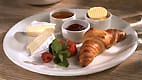 ... Pancake, Käsescheiben1,2, gekochter Schinken, Rührei, Rostbratwürstchen7, gebratener Bacon4 und gegrillte Tomaten, Champignons, 6 halbe Scheiben Toast, frischer Orangensaft