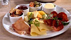 ... Tomaten-Mozzarella mit Pesto, Obstsalat, Oliven mit Parmesan, Marmelade, italienischer Landschinken, Coppa und Salami, dazu Ciabatta