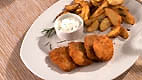 ... dreierlei Fischfilets auf asiatischem Gemüse, holypotatoes und Sourcream