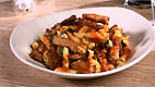 ... Penne mit gebratener Hähnchenbrust2, getrockneten Tomaten und Zucchiniwürfeln