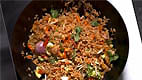 ... gebratener Reis mit asiatischem Gemüse in fruchtiger Mango-Chili-Sauce aus dem Wok