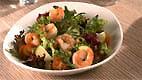 ... Blattsalate mit Oliven, gebratenen Gambas und weißem Balsamico-Dressing2,5