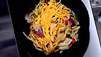 ... gebratene Hartweizennudeln mit asiatischem Gemüse in fruchtiger Mango-Chili-Sauce aus dem Wok